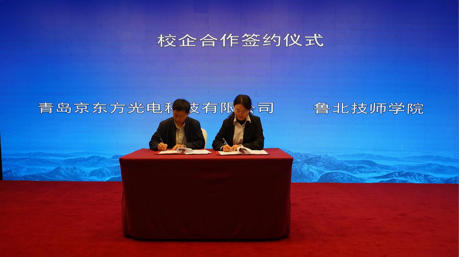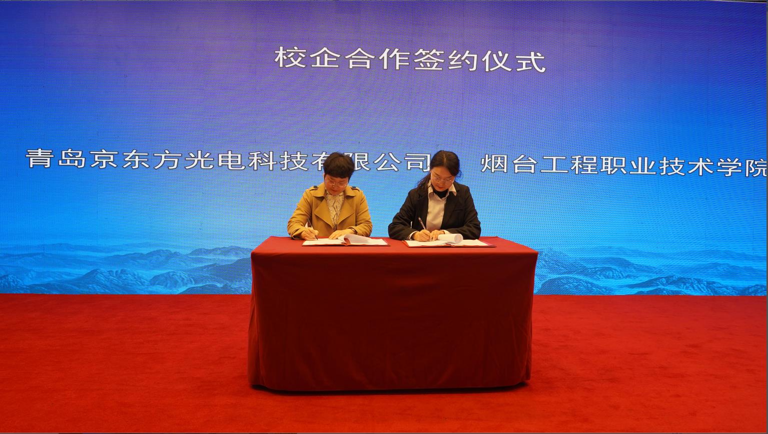 大会还举行了校企合作现场签约仪式。青岛京东方光电科技有限公司分别与枣庄职业学院、烟台工程职业技术学院、济南工程职业技术学院、鲁北技师学院依次签订校企合作协议,为高技能人才培养与供需架起桥梁。